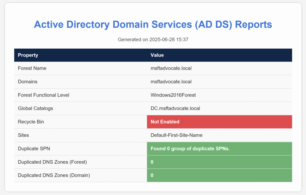 <h1>Active Directory Domain Services (AD DS) Report</h1>
