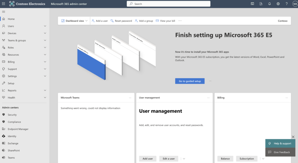Microsoft 365 admin center giriş sağlamış olduk aşağıdaki şekilde bir ekran karşılıyor bizleri işlemleri bu sayfa üzerinden ilerliyor olacağız.