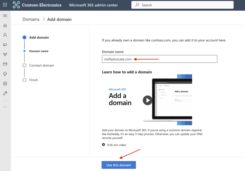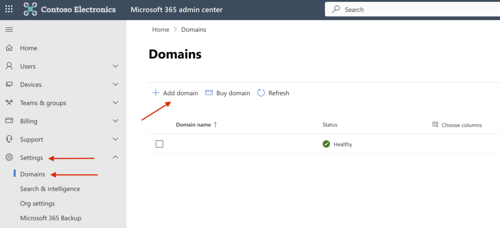 Sign in to the Microsoft 365 admin center and select Show all > Settings > Domains > Add domain tıklıyoruz.