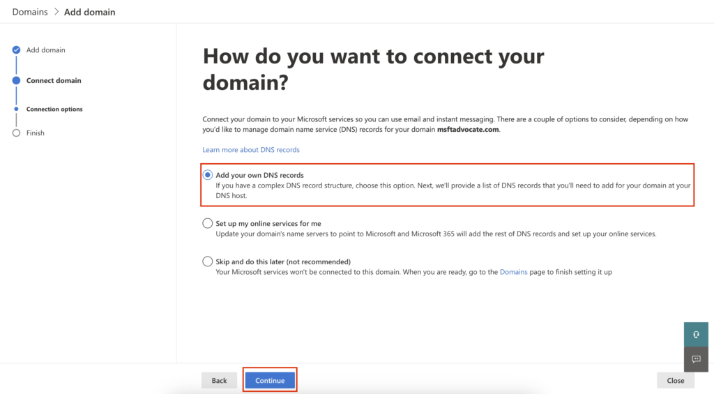 Alan adımız doğrulanmış gözükmektedir en üstteki seçeneği seçerek bir sonraki adıma geçiyoruz mailleşme için gereken dns kayıtlarını bizlere verecektir.