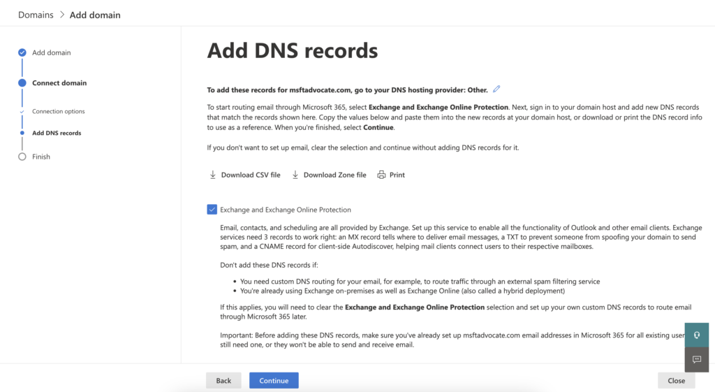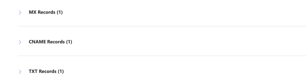 Ekranı aşağıya kaydırdıktan sonra aşağıdaki gibi bir görüntü bizleri karşılayacaktır yandaki küçük oklardan genişlettikten sonrasında kayıtların içeriğini bizlere gösterecektir. Dns hizmeti aldığınız yere aynı şekilde kayıtları iletip onlarında girişleri sağlandıktan sonrasında Continue diyip devam ediyoruz.