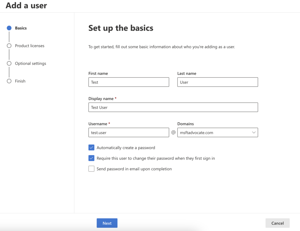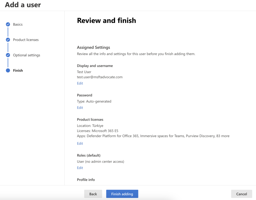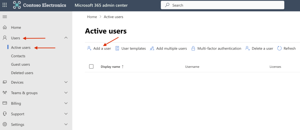 Microsoft 365 admin center üzerinden aşağıdaki adımları takip ederek kullanıcı oluşturabilirsiniz.