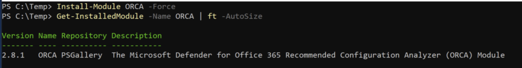 Get-InstalledModule -Name ORCA | ft -AutoSize