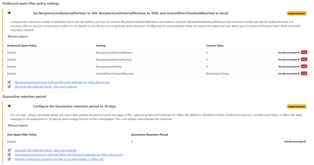 Taramanın ardından oluşturulan raporu gözden geçirin. Önerileri kuruluşunuzun ihtiyaçlarına göre önceliklendirin ve önerilen değişiklikleri uygulayın. Sürekli olarak en iyi uygulamalarla güncel kalmak için düzenli taramalar yapabilirsiniz.