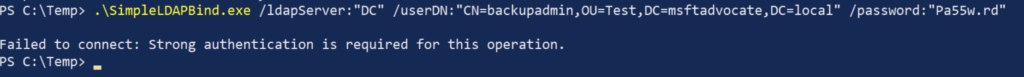 Performing a Simple LDAP Bind results in “Exposed entities” in Microsoft Defender for Identity Recommended Actions “Stop clear text credentials exposure.“